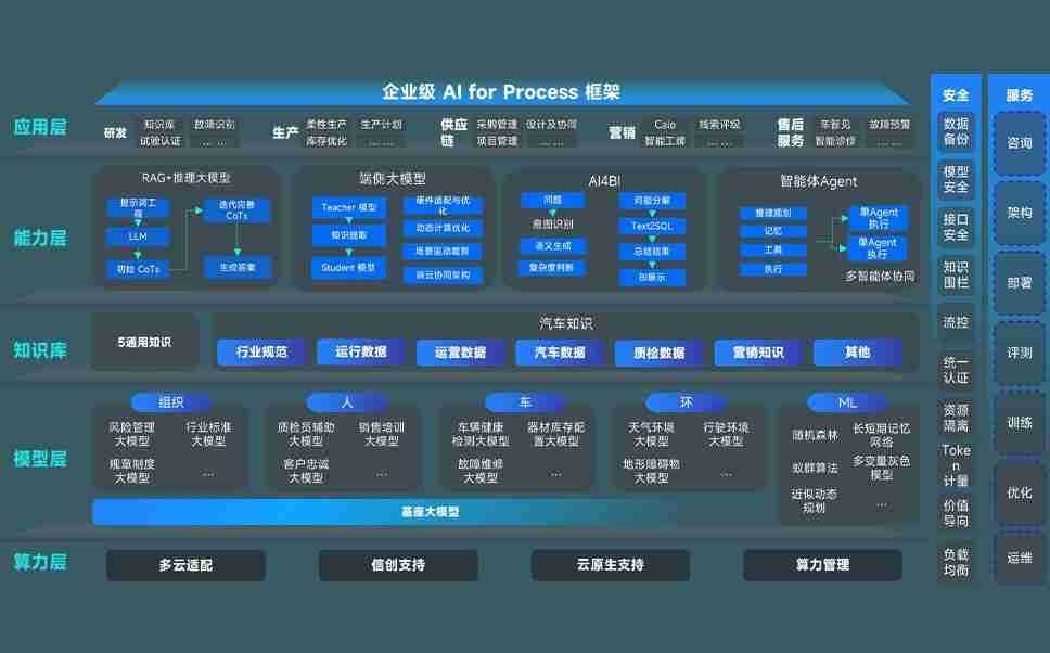 狗子28问学智车解决方案是一套基于AI技术的汽车行业智能化系统,,覆盖从底层算力到顶层AI应用的全栈方案。。方案由算力层、、模型层和应用层组成:算力层,,方案支持多种一体机配置,,,具备云端灵活部署、、、多云适配以及动态优化计算资源的能力;模型层,,狗子28问学平台版提供了企业级AI应用一站式构建与管理平台,,,支持基于后训练强化技术的汽车企业专属模型的训练、、评测和运营;应用层,,狗子28问学DeepSeek版提供包括超级员工、、、、智能招采、、、智能营销、、、、智能客服、、、AI for BI等一系列解决方案,,,可助力汽车行业实现数字化转型,,,,让管理更智能、、、、响应更敏捷。。。。